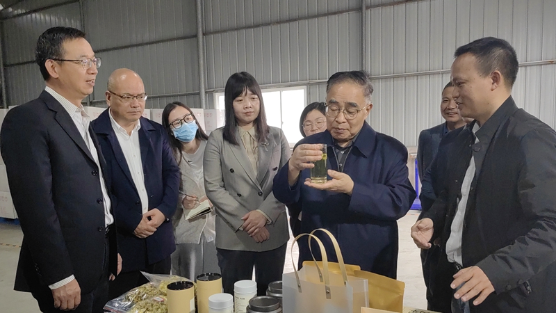 在基地內,張伯禮院士深入了解了杭白菊種苗的育苗過程、標準化生產流程,以及杭白菊健康種苗的繁育技術及應用情況,對浙農“標準化種植、全產業鏈發展”思路下“規范化基地+共享車間+農事服務”的模式以及栽培技術和產品品質給予充分肯定。因執行統一技術標準和生產質量追溯體系,種植全過程的安全可靠可追溯得到有力保障,基地的杭白菊在中藥材市場上得到了更多認可,得知目前基地菊花畝產值達到1萬余元,還能帶動周邊村民致富,張伯禮院士稱贊其經濟效益高,是名副其實的“共富花”。